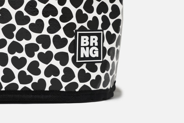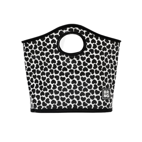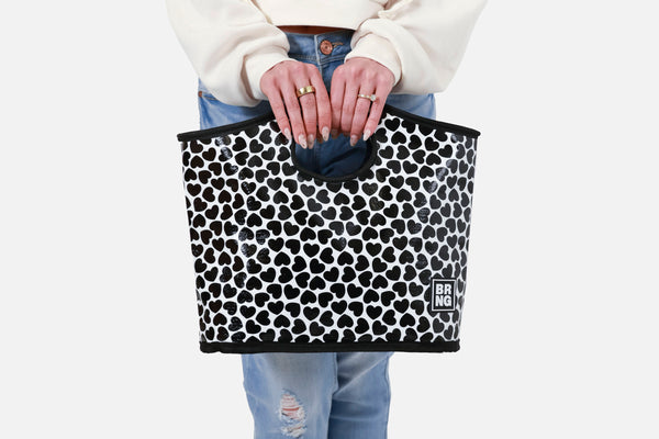 There are hearts aplenty with our Katie mini tote – oh so graphically bold and sweet at the same time. It’s the perfect small-sized travel bag for the plane, roomy enough to hold your book, phone charger and snacks, and easily stow under the seat.
