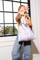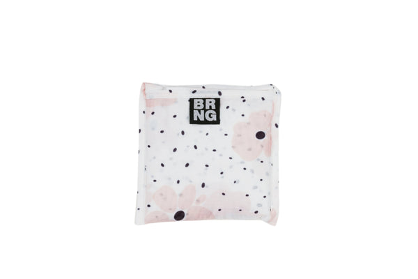 Abstract blush pink poppies on a black speckled backdrop simply ups the cuteness factor of our Carley foldable shopper.